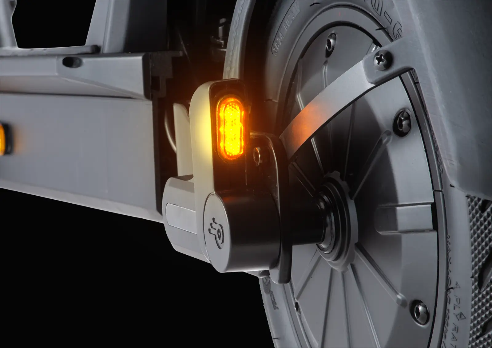 Blinker vorne und hinten – Bieten zusätzliche Sichtbarkeit und Sicherheit. Die Bedienung erfolgt einfach über den Schalter links am Lenker, ohne die Griffe loszulassen.