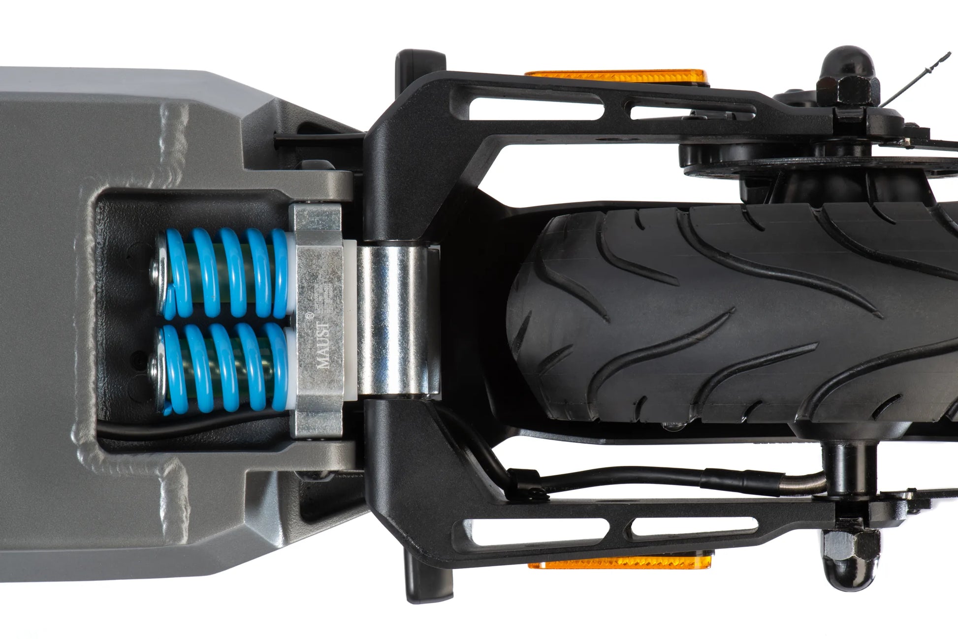 Die Federung an Vorder- und Hinterachse sorgt für ein außergewöhnlich komfortables Fahrgefühl. Unebenheiten wie Bordsteinkanten oder Kanaldeckel werden effektiv abgefedert. Die überarbeitete Federung mit mehr Ausfederweg und Gummi-Bump-Stop erhöht Komfort und Kontrolle deutlich.