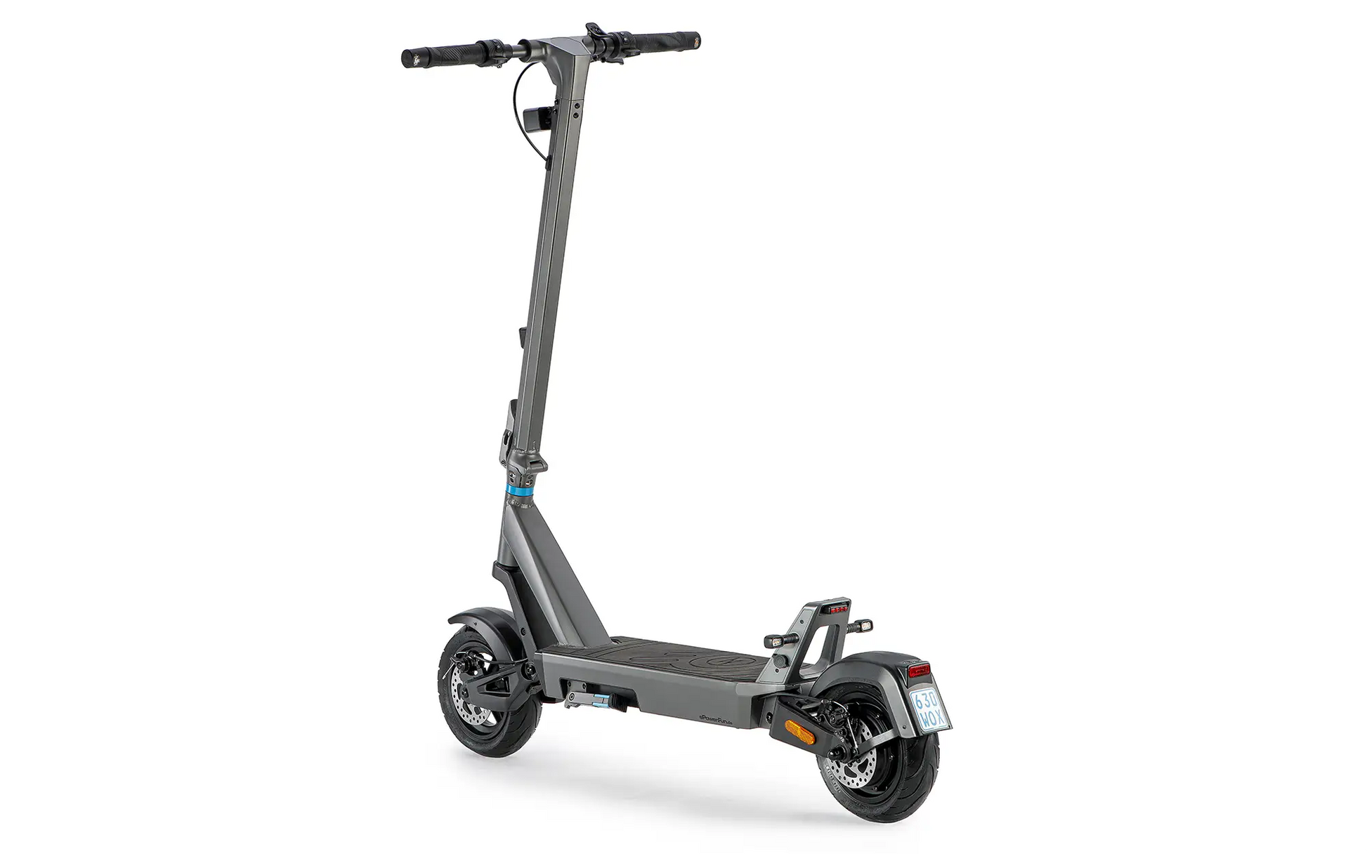 Zwei 120-mm-Scheibenbremsen sorgen für starke Verzögerung in jeder Fahrsituation. Die Bremshebel aktivieren zusätzlich immer die E-Bremse an der Hinterachse – für optimale Bremsverteilung und Sicherheit.