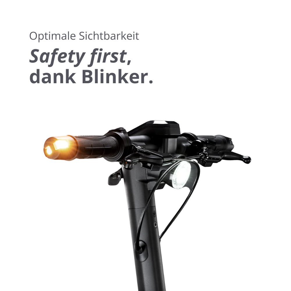 Die Blinkanlage der PRO-Serie an Lenker und Schutzblech erhöht die Sicherheit beim Richtungswechsel und rundet das moderne Sicherheitskonzept ab.