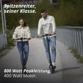 Der effiziente 36-V-Motor mit 400 W Dauerleistung und 800 W Peak Power bietet kräftige Beschleunigung und bewältigt Steigungen bis 25 % mühelos.